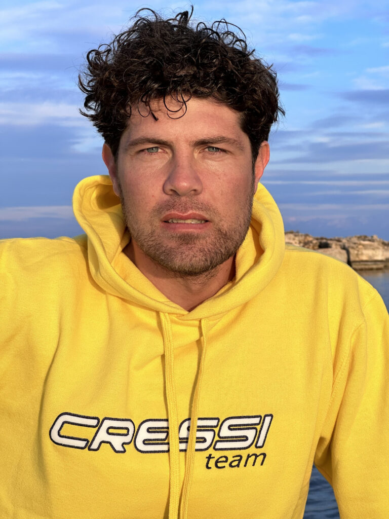 Luigi Puretti: En cuanto al traje de neopreno, tengo previsto utilizar el nuevo Cressi Posidonia de 5 mm, forrado por fuera. Si nos encontramos con aguas más frías de lo esperado, llevaré también el Cressi Ricciola, liso por fuera, que es muy eficaz en esas condiciones.