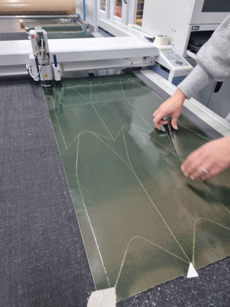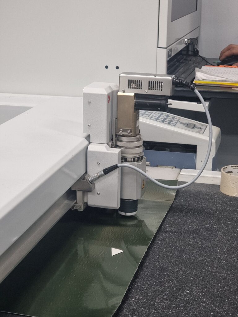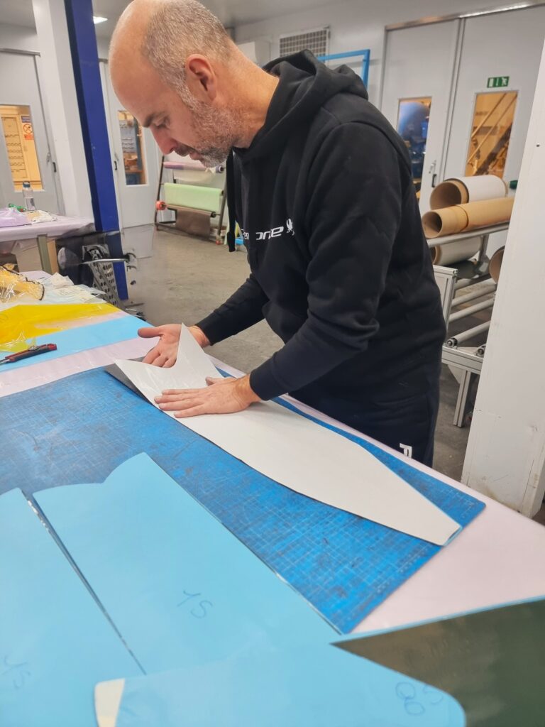 La coupe dimensionnelle parfaite de chaque voilure est assurée par un traceur flottant, qui s’adapte parfaitement à la surface de la fibre de carbone grâce à la mobilité contrôlée du support flottant.