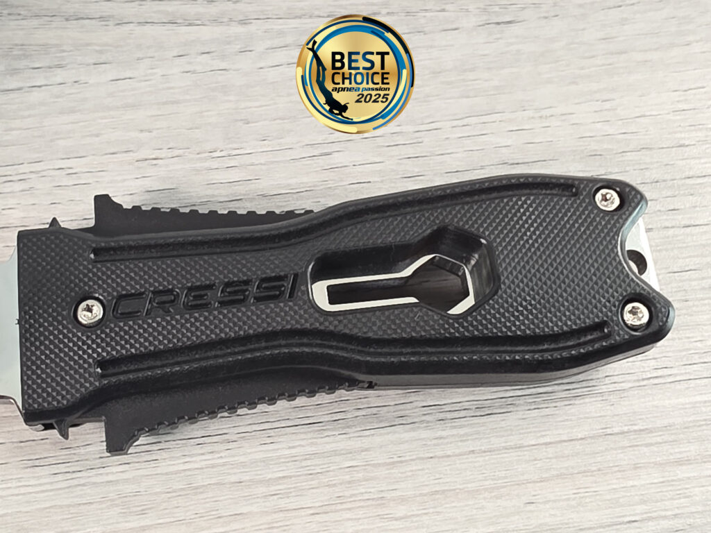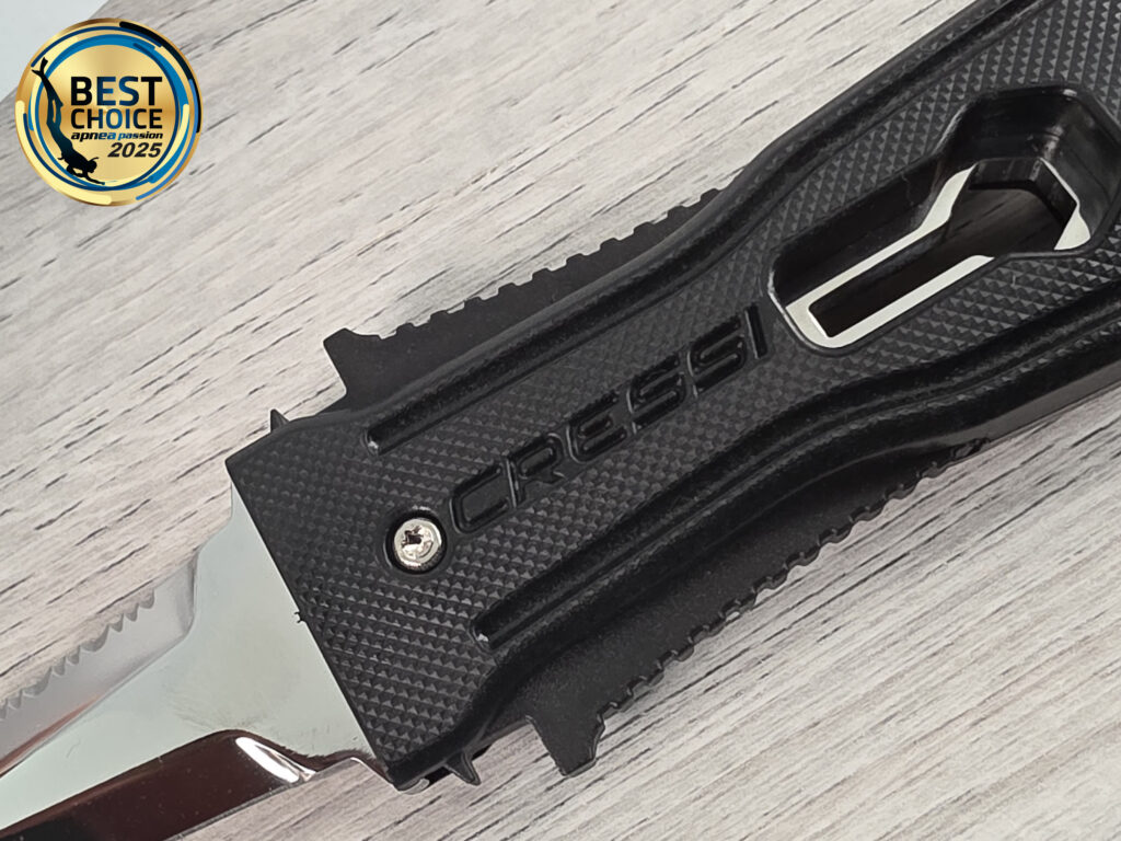 La dague Cressi Snake possède tous les éléments pour être lauréate du Best Choice by Apnea Passion pour 2025. Acier de la meilleure qualité, dimensions et design superbes et ajustement parfait soit au bras, soit à la ceinture de plombs. Le prix, qui n’est pas négligeable, est d’environ 60 euros. Malgré tout, cette dague vous assurera des performances durables et vous fera certainement économiser de l’argent au final par rapport aux solutions chinoises low cost. Nous aurions aimé avoir plus que la couleur noire pour la poignée, peut-être une couleur plus visible dans l’eau.