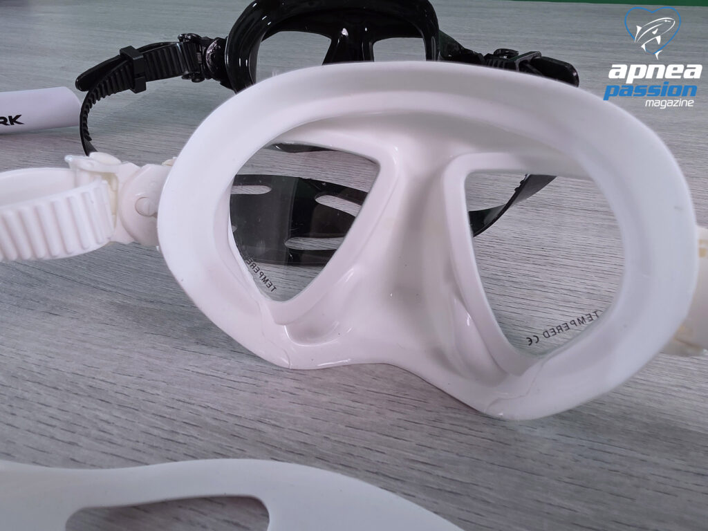 Naturalmente verificheremo se questa situazione genera in qualche modo un minor campo visivo della Cetma Shark. Non è detto, però, perchè aspetti come la morbidezza del silicone, apparentemente maggiore sulla maschera dell’azienda italiana, possono avvicinare le lenti all’occhio e determinare un aumento del campo visivo e un’ulteriore riduzione del volume interno.