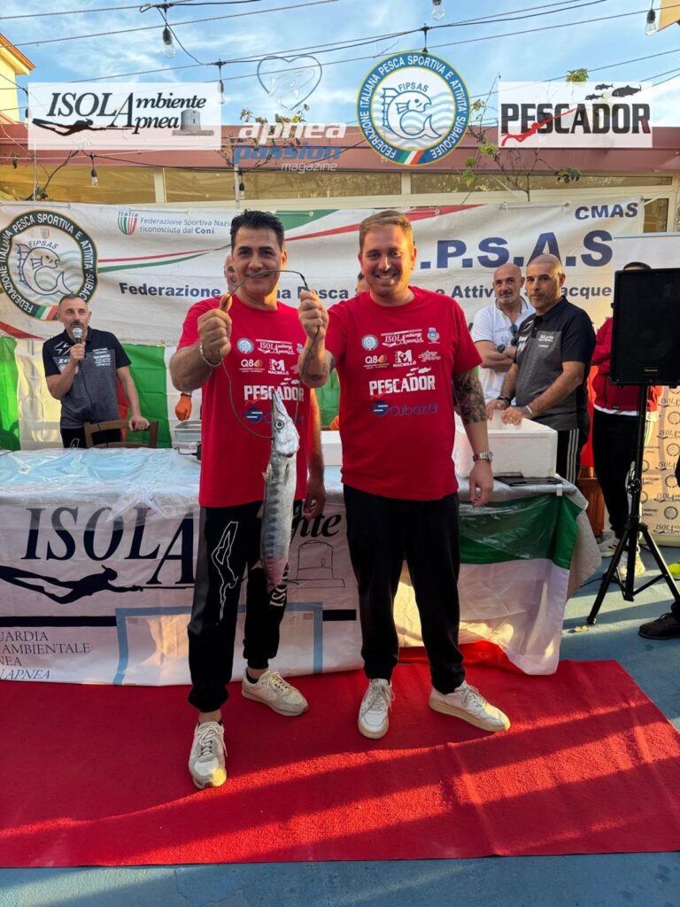 Alle loro spalle, Cutrupi e Petrone (anch’essi Isola Ambiente Apnea) conquistano il secondo posto con il barracuda più grosso della gara, che vale loro anche il premio speciale.