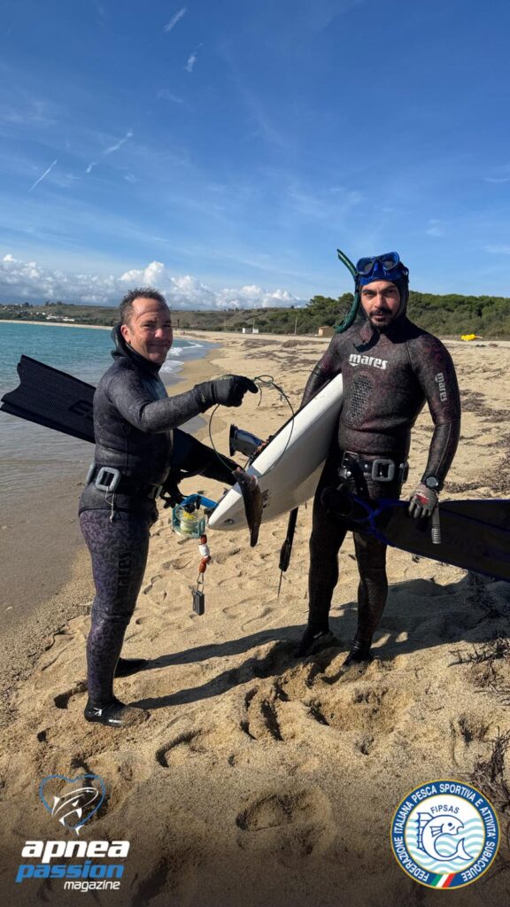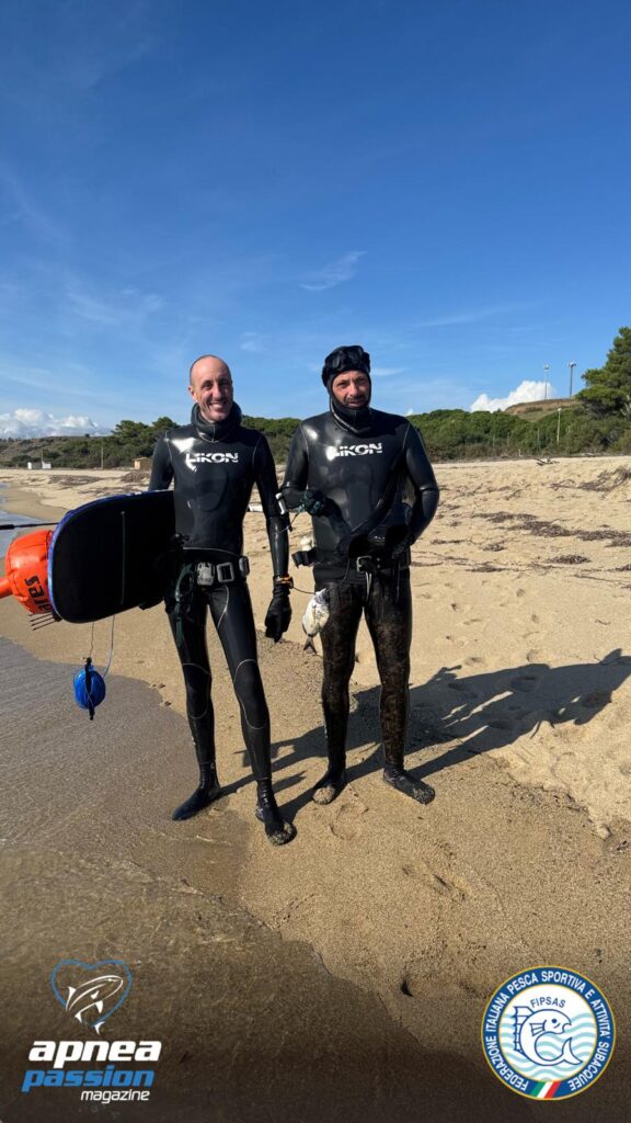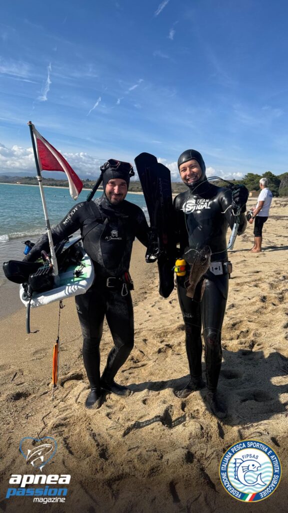 Praialonga (KR) – Nemmeno l’allerta meteo arancione, né il mare al limite della praticabilità, sono riusciti a fermare la passione e la determinazione dei campioni italiani di pesca in apnea a coppie 2025 (Giaquinta-Mercurio). Dopo giorni di pioggia torrenziale e visibilità ridotta ai minimi termini, la gara si è disputata nel giorno di recupero, regalando comunque spettacolo, tecnica e cuore.