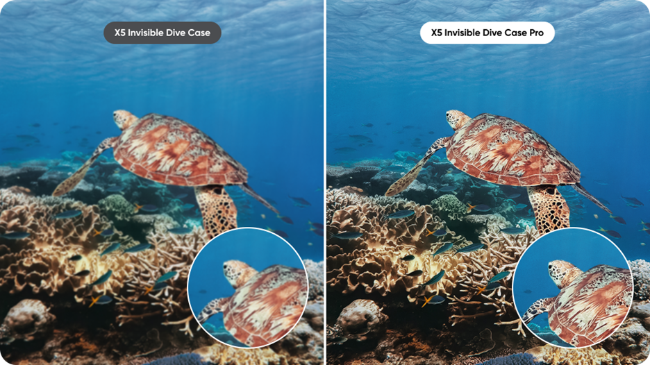 Le tue riprese subacquee non sono mai state così fluide: dai il benvenuto a Insta360 X5 Case subacqueo invisibile pro. Sviluppato a partire dal design del modello originale di X5 Case subacqueo invisibile, il Case subacqueo invisibile pro dispone di un’ottica avanzata che riduce la distorsione causata dalla rifrazione, per catturare dettagli più nitidi e colori più veritieri, soprattutto quando crei riprese ravvicinate o in acque limpide.